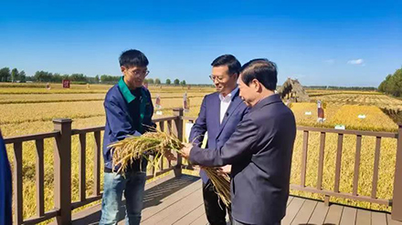 9月17日上午,黑龍江廣播電視臺(tái)重點(diǎn)報(bào)道部一行來(lái)到嘉香米業(yè),錄制《苗稻香里說(shuō)豐年》節(jié)目。嘉香米業(yè)有限公司總經(jīng)理宋永偉現(xiàn)場(chǎng)介紹今年的水稻情況,省高端智庫(kù)、東北農(nóng)業(yè)大學(xué)現(xiàn)代農(nóng)業(yè)發(fā)展研究中心研究員、省農(nóng)業(yè)農(nóng)村廳原一級(jí)巡視員喬延春走進(jìn)田間地頭,與省臺(tái)、北林區(qū)農(nóng)民分享豐收的喜悅。